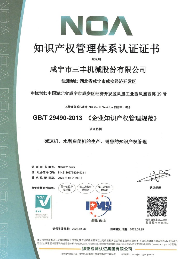 知識產(chǎn)權(quán)管理體系認證證書